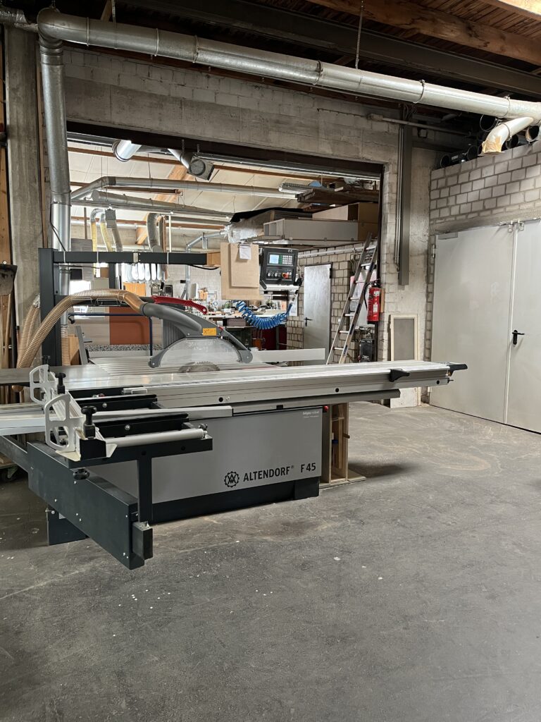 Unter einem Dach mit der Tischlerei Niehaus produzieren wir auf ca. 1600 qm Fertigungsfläche. Ein gut zugängliches und sortiertes Plattenlager ist die Basis für einen perfekten Arbeitsablauf. Von hier aus geht es entweder auf die liegende Plattensäge oder auf die Nesting CNC Fräse. Im nächsten Schritt werden die Platten an der Kantenanleimmaschine bekantet. Danach erfolgt entweder weitere CNC Bearbeitung oder es geht in den Bankraum zum Zusammenbau und wird anschließend verpackt.