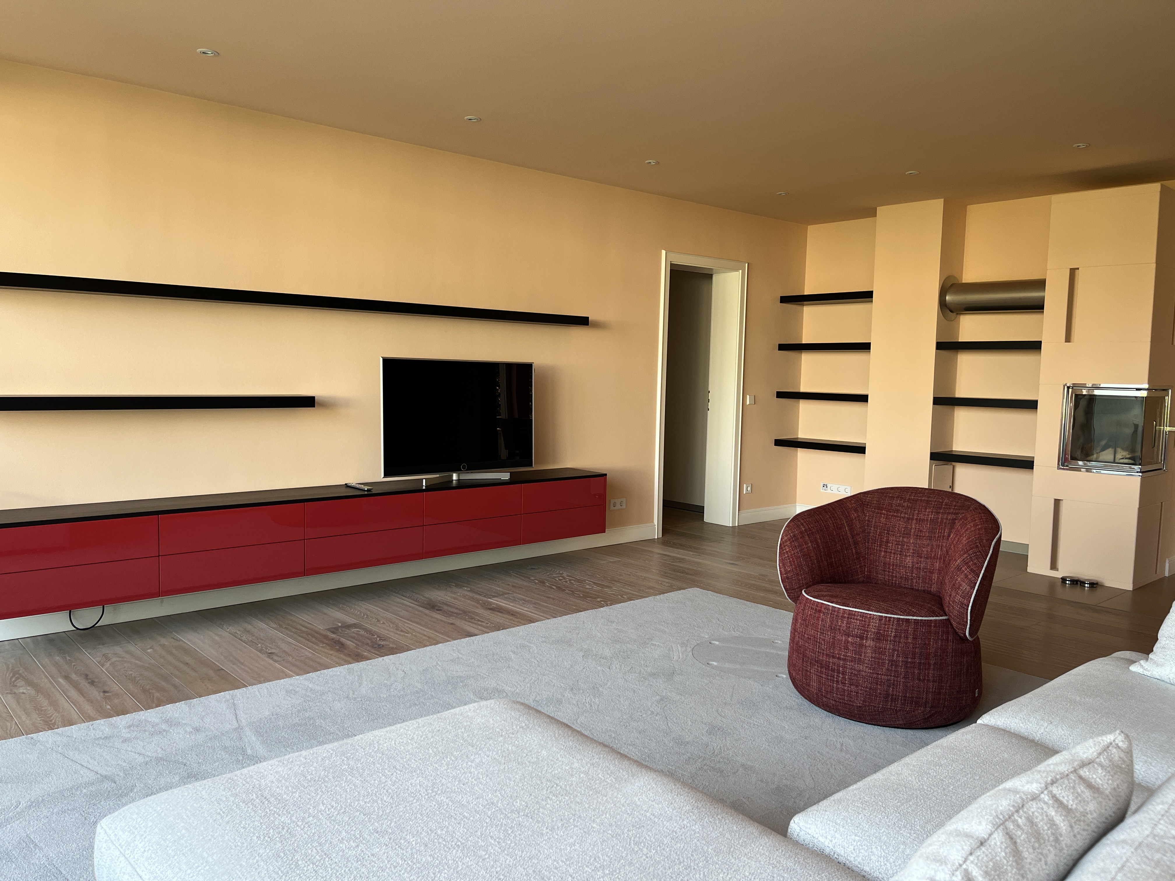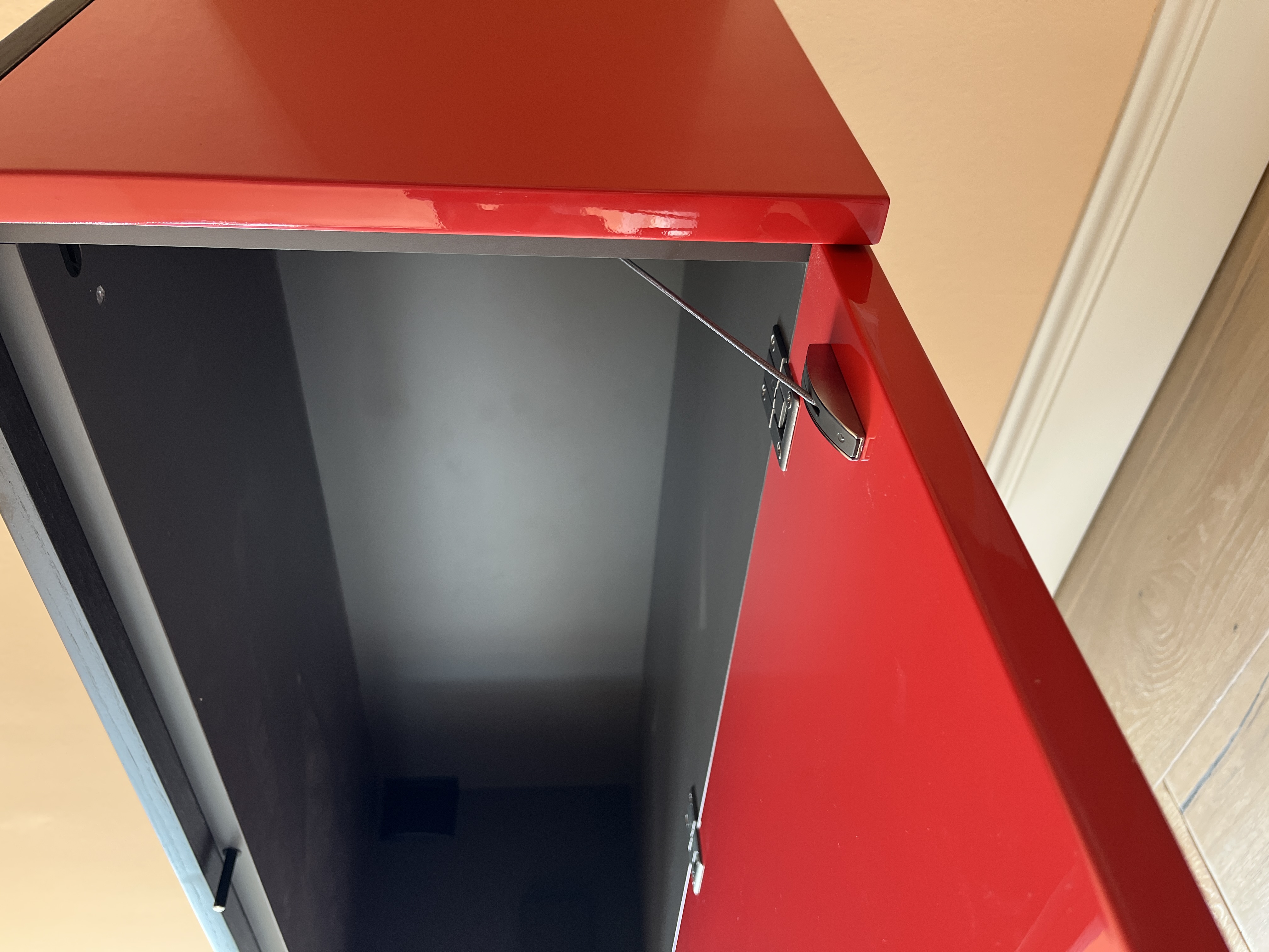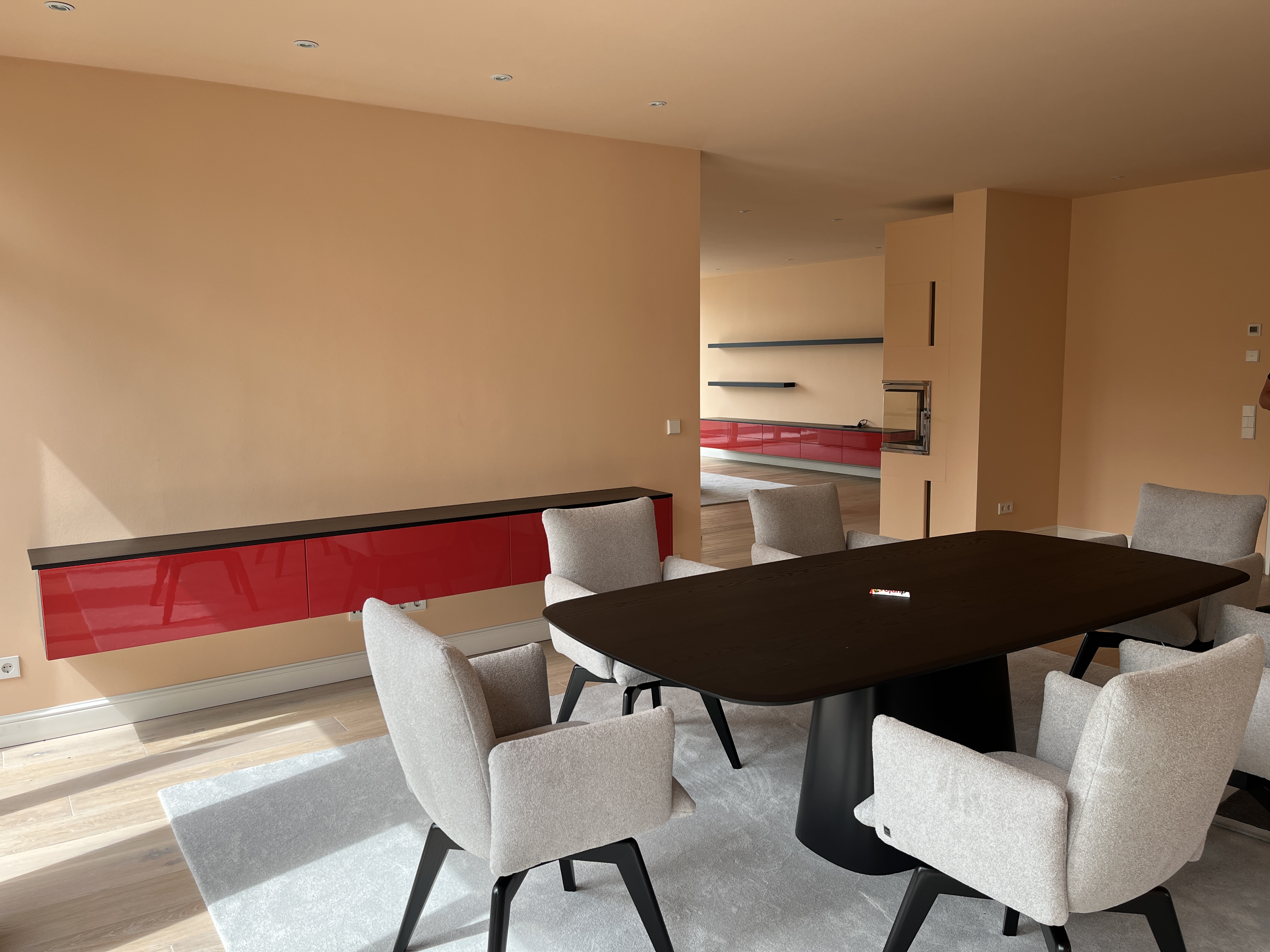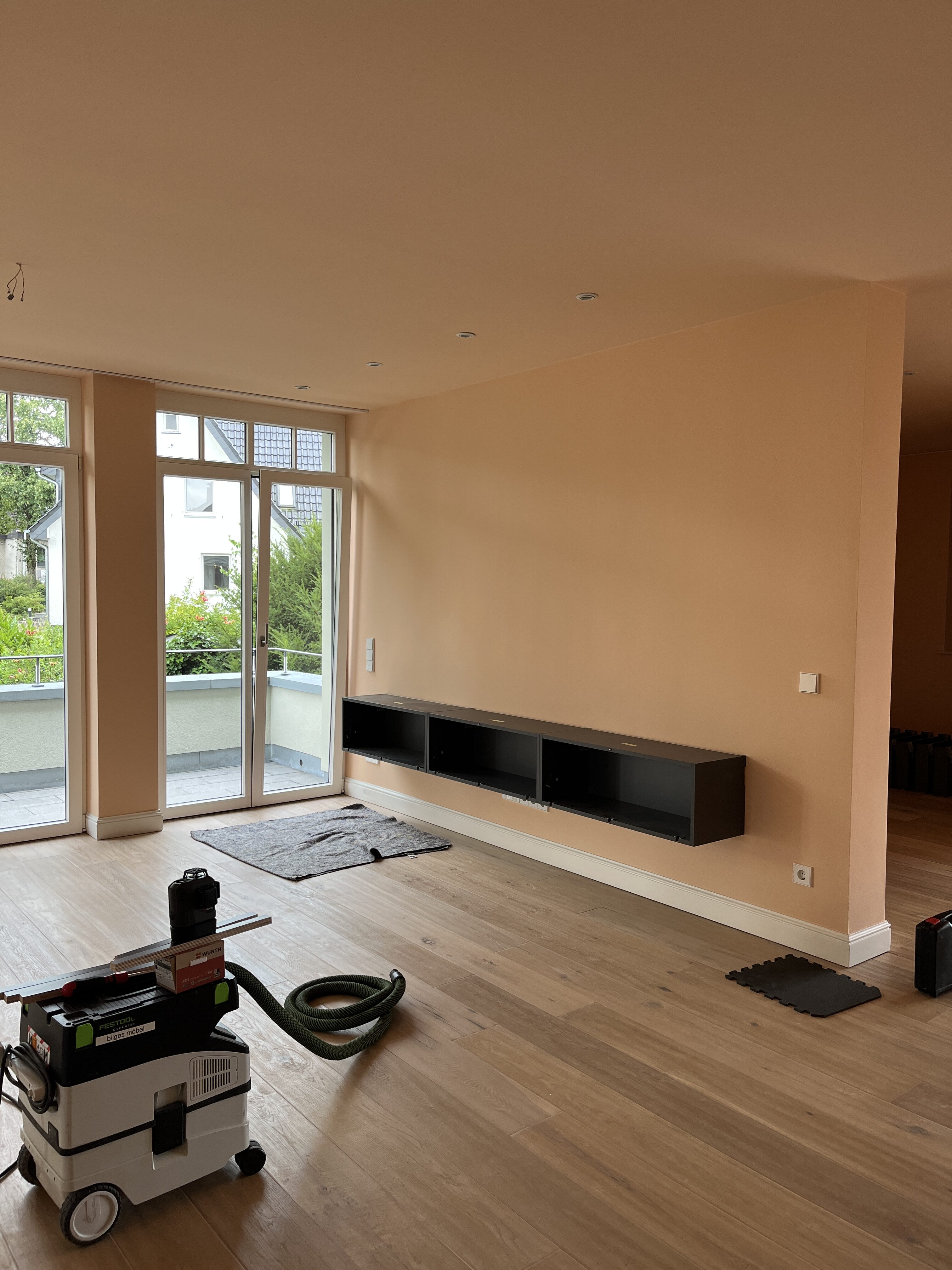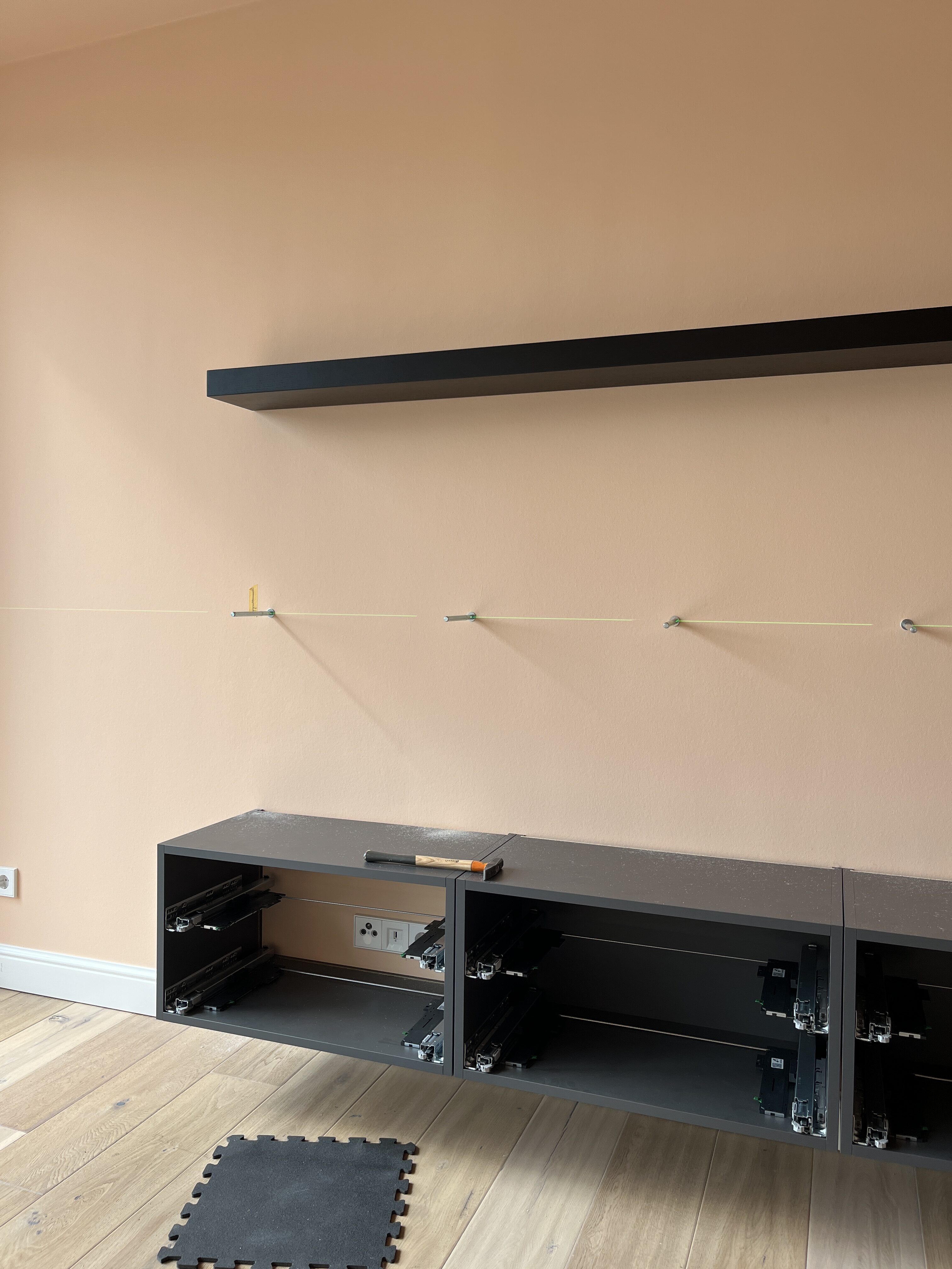 Deckplatte und unsichtbar montierte Böden in Esche schwarz gebeizt und klar lackiert